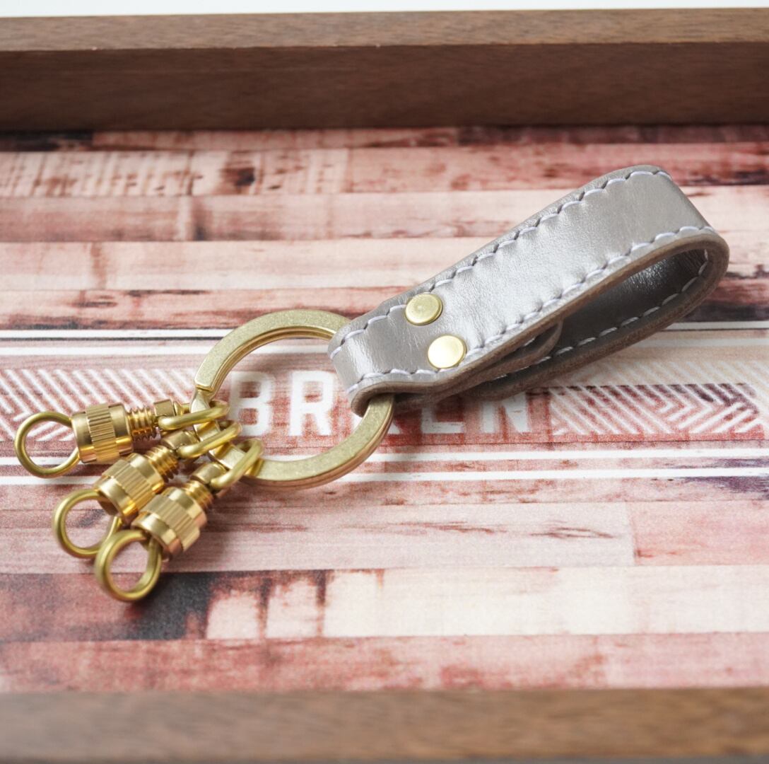 手作りで仕上げることで、一つひとつ丁寧に作り込まれたキーリングには、職人の温かい想いが込められています。持つたびにその手触りや風合いを感じ、日常を彩る一品となることでしょう。