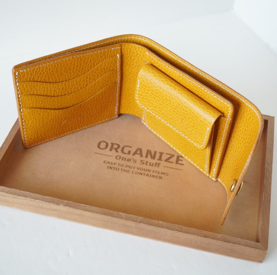 三つ折りハーフウォレット シボ革 イエロー