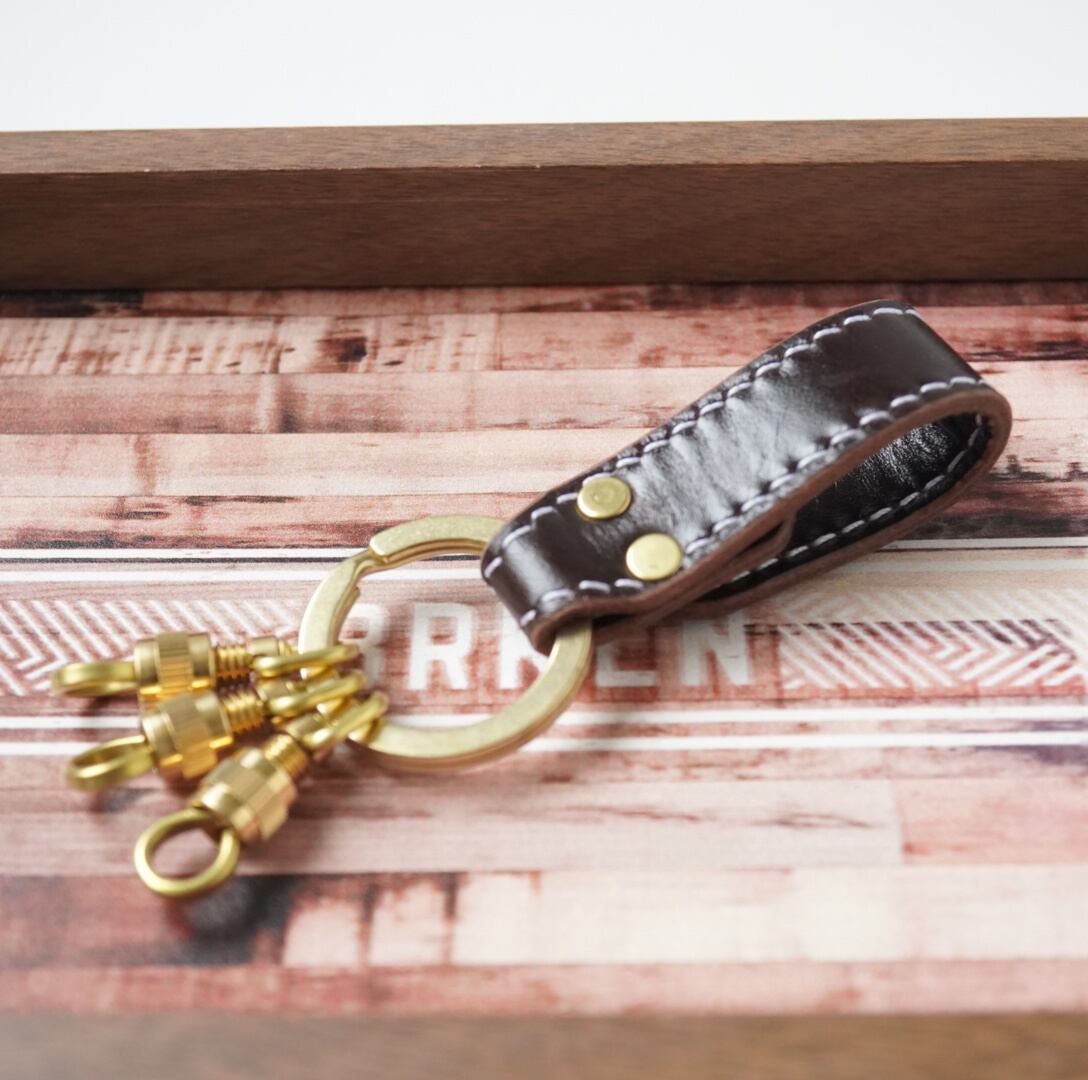手作りで仕上げることで、一つひとつ丁寧に作り込まれたキーリングには、職人の温かい想いが込められています。持つたびにその手触りや風合いを感じ、日常を彩る一品となることでしょう。